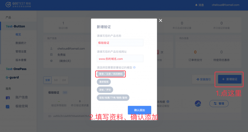 然后点击Test-Button的进入,接下来需要三步部署验证服务:生成ID->下载Sdk->部署验证。