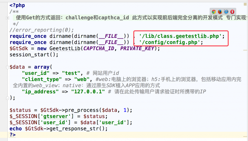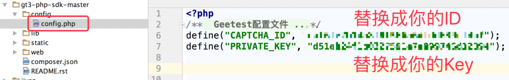 下载完之后生成gt3-php-sdk-master目录。修改config目录下的config.php文件。